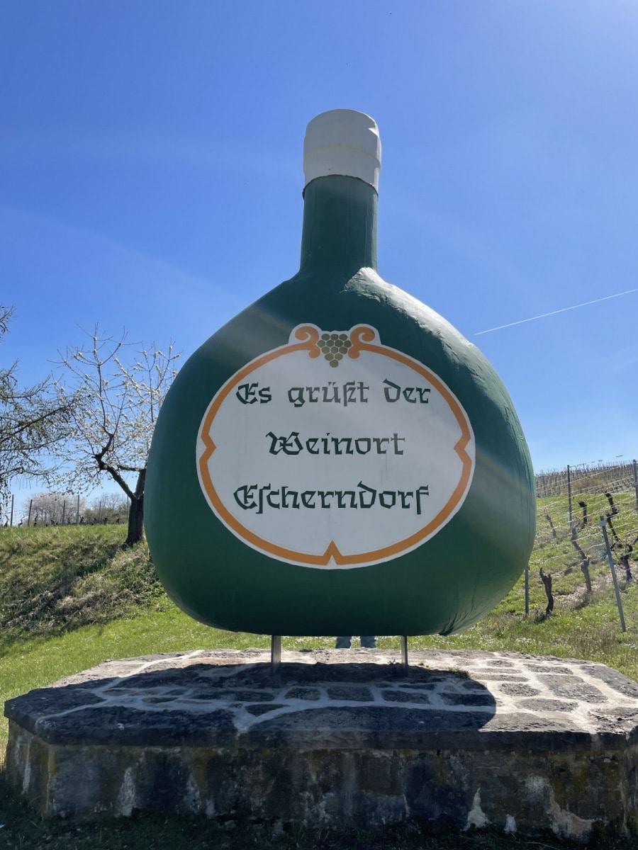 Auf dem Weg nach Hause wurde fränkischer Wein und Spargel für das Wochenende gekauft. Anschließend wurde in Escherndorf, an der wunderschönen Mainschleife, der Tradi GC1Z1BE Prost besucht. Zum Glück konnte Sue unter den Boxbeutel kriechen und die Dose wurde erspäht und wenig später standen die GeoJRs im Logbuch. Ein sehr schöner Cache!